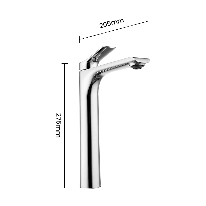 The basin mixer’s tall, angular shape delivers a graceful water flow, offering ample space for comfort. Its geometric design adds sculptural beauty, blending functionality with elegance.