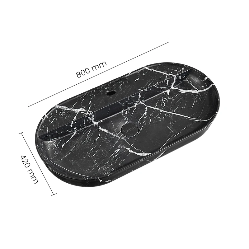 Unique, Luxurious Design: Made from high-grade natural marble with a unique Neo Marquina pattern, guaranteeing a one-of-a-kind, high-end centerpiece for your bathroom.